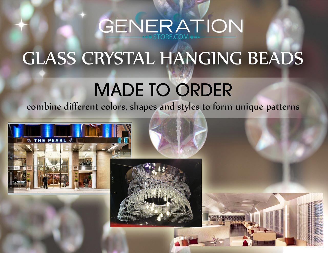 CUSTOM MADE GLASS CRYSTAL HANGING BEADED CURTAINS, CHANDELIERS AND COLUMNS